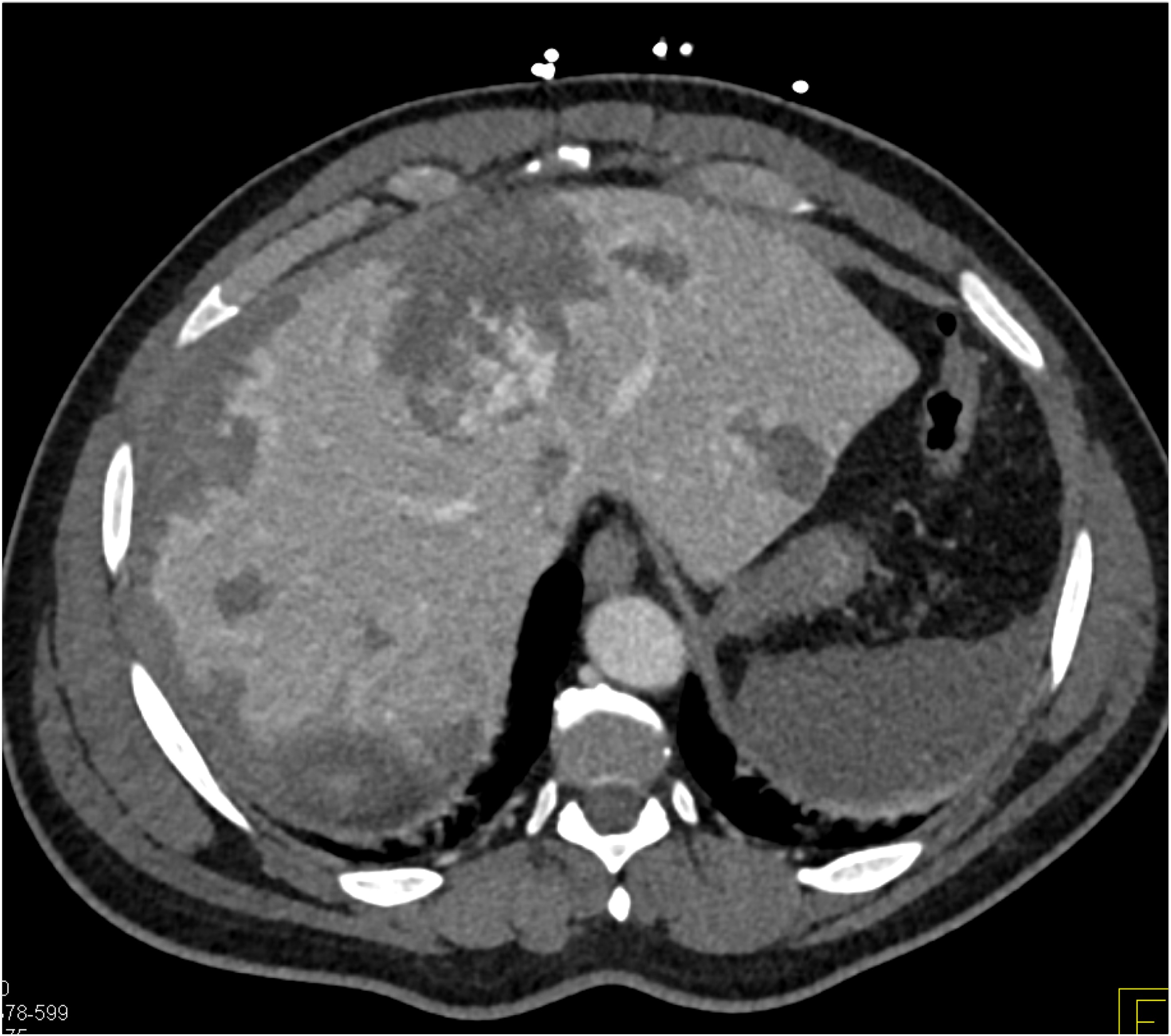 8) In this patient with RUQ pain and no history of trauma the best diagnosis is?